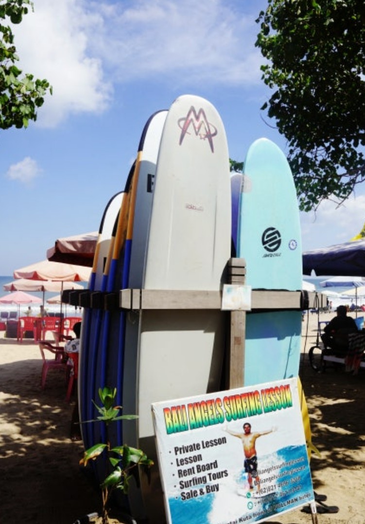 꾸따는 초급 서핑으로 유명하고 중급, 고급 서핑은 짱구에서 많이 합니다.