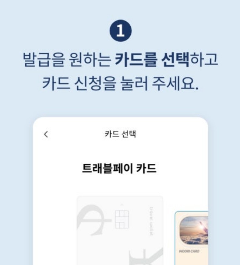 앱스토어 혹은 플레이스토어에서 트래블월렛 앱을 다운로드해서 발급 신청하면 됩니다.